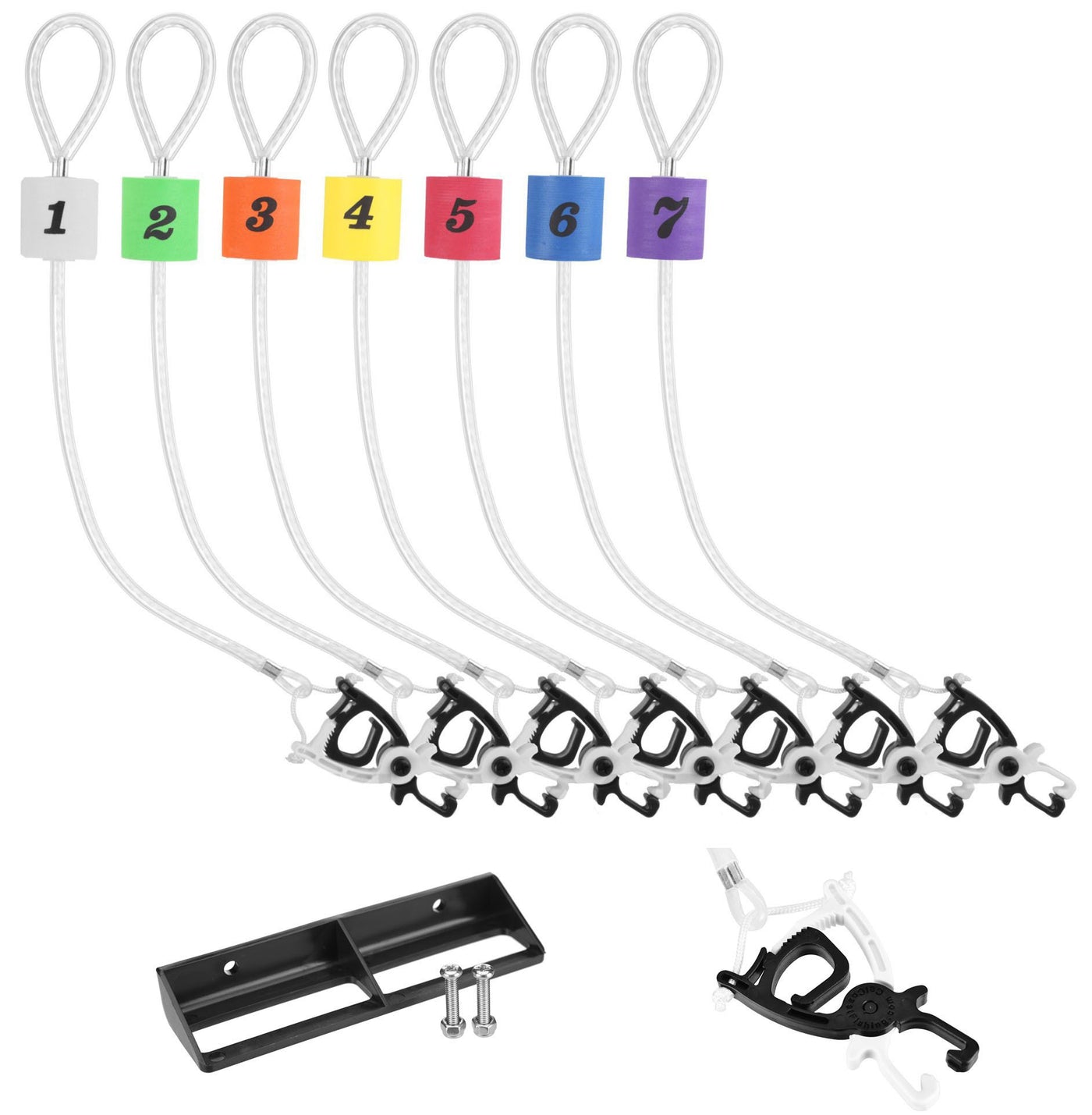 Easily sort your tourney limit with the fish-friendly Cal Coast Fishing Clip-N-Cull 2.0 Culling System. This is an in-the-live-well culling system that securely holds and organizes your catches while reducing stress and injury to the fish. Unlike other systems, the Clip-N-Cull does not require puncturing the fish's jaw. The unique ratchet-tooth design holds firm on the fish's jaw, and the holding strength can be quickly adjusted for ideal hold. And you don't have to worry about taking your hands off of your prizes catch to operate the clips; one hand is all you'll need! Simply place your index finger and middle finger on the finger holds and squeeze to open the clip. Then slide the Clip-N-Cull onto the bottom lip of the fish, and squeeze the clip close to engage the locking system. To top off the flawless design, each clip has a color-coded number float for easy grab-and-cull, because during a tourney time is not something you want to waste! Perfect for kayak anglers and bass anglers alike!