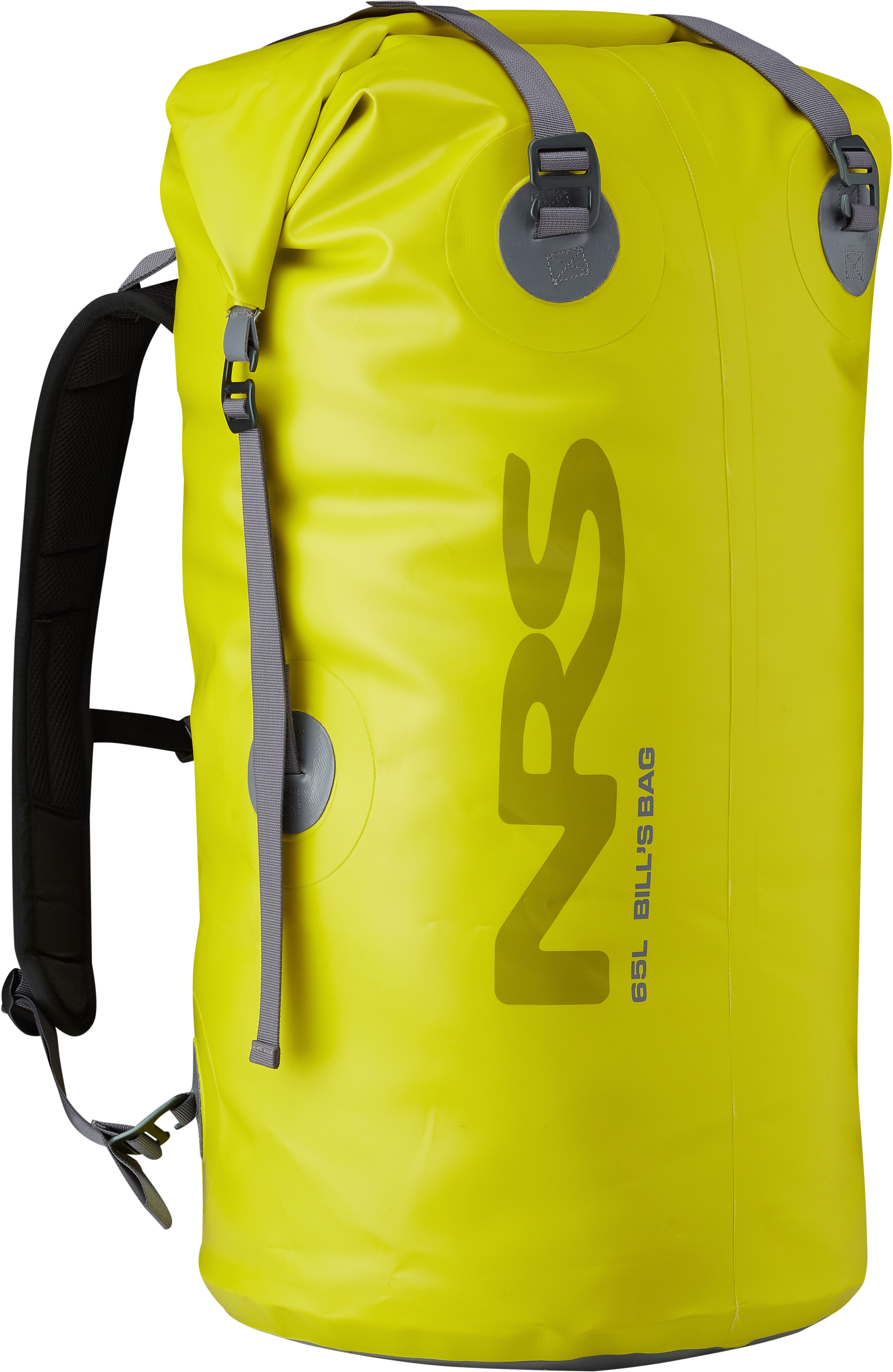 The NRS 65L Bill's Bag Dry Bag is the perfect choice if you're heading outdoors for a weekend or overnight trip. This bag is constructed out of heavy-duty 21 oz. TobaTex material with a reinforced bottom of 34 oz. TobaTex. This construction ensures that your bag will last year after year and trip after trip. The bag also has aluminum fasteners on the compression straps. These fasteners were used instead of plastic buckles to increase durability and prevent any broken closures. This bag gives you easy access with its top-loading functionality. Once you have your gear loaded up, secure your belongings with the StormStrip closure system to provide you with a confident seal. There are removable, adjustable backpack harness straps to provide hands-free transportation. This makes it perfect if you are going through rapids or headed on rocky terrain where you need your hands for balance.