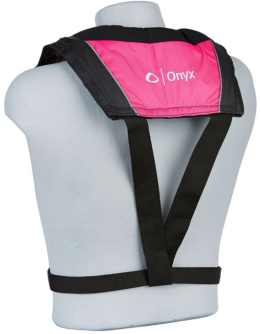 The Onyx A/M-24 Automatic / Manual Inflatable Life Jacket (PFD) allows you to toggle between automatic/manual inflation and manual only inflation. This PFD will automatically inflate upon immersion in water or when the wearer pulls the "Jerk to Inflate" handle. This Coast Guard Approved life jacket has a small profile for maximum comfort while still ensuring the users safety.