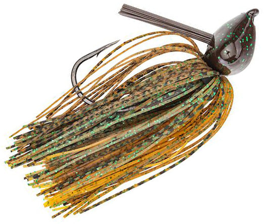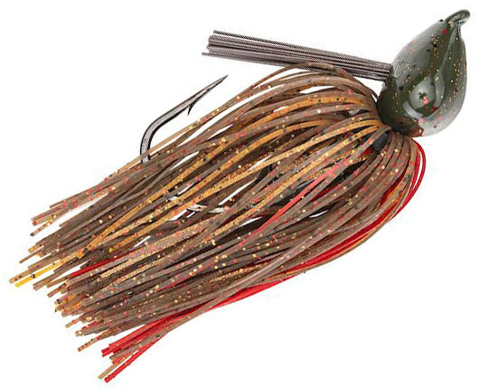 The Strike King Denny Brauer Structure Jig is a must-have for any angler that loves throwing jigs in heavy structure but hates getting hung up on said structure. Professional angler Denny Brauer has designed this jig with that exact thought. The specially designed Owner 2X strong Cutting Point hook has a zero degree line tie, which allows for a straight pull through all types of structure and over all jagged rocks. The unique design of the Cobra Head means less room in the hook gap, allowing a better hold on the fish once it strikes. The wide head allows you full feeling of the bottom, and the angle of the weedguard prevents the jig from any hang-ups while moving through the water.